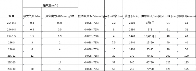 2SK系列两级水环米兰竞彩吧app主要技术性能参数表